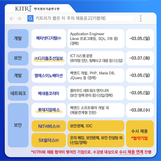 🎯KITRI가 뽑은 이 주의 채용공고!🎯