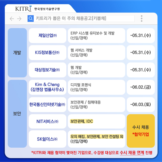 🎯KITRI가 뽑은 이 주의 채용공고!🎯