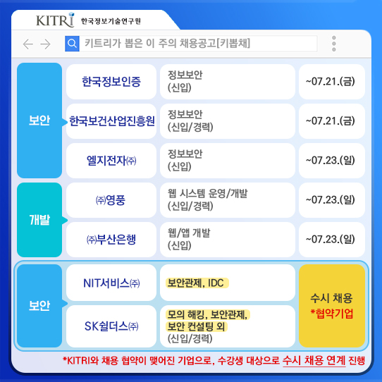 🎯KITRI가 뽑은 이 주의 채용공고!🎯