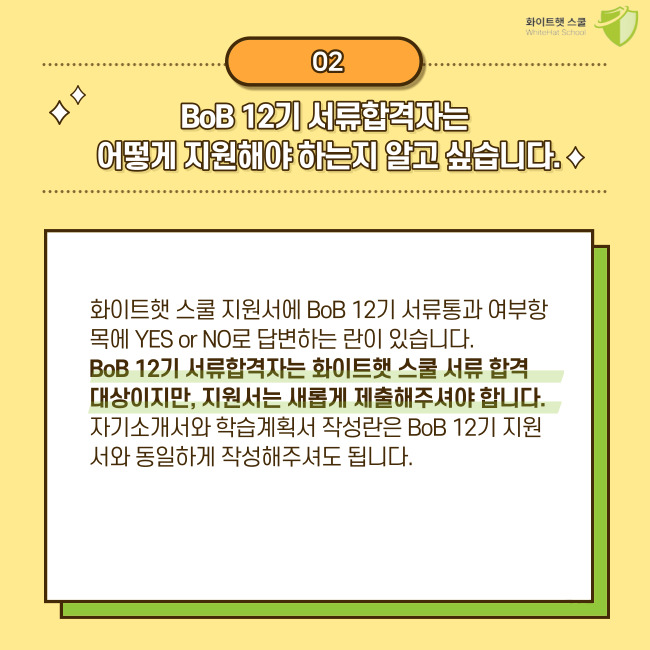 2. BoB 12기 서류합격자는 화이트햇 스쿨에 어떻게 지원하면 될까요?