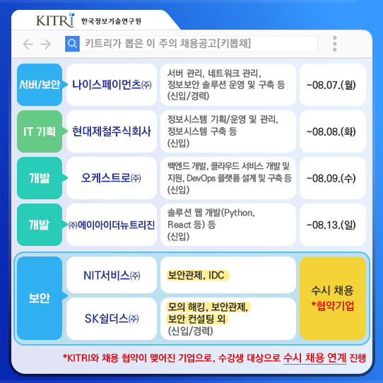 🎯KITRI가 뽑은 이 주의 채용공고!🎯