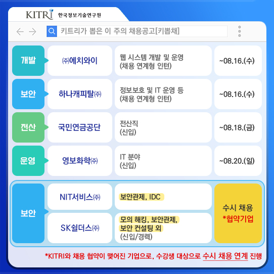 🎯KITRI가 뽑은 이 주의 채용공고!🎯